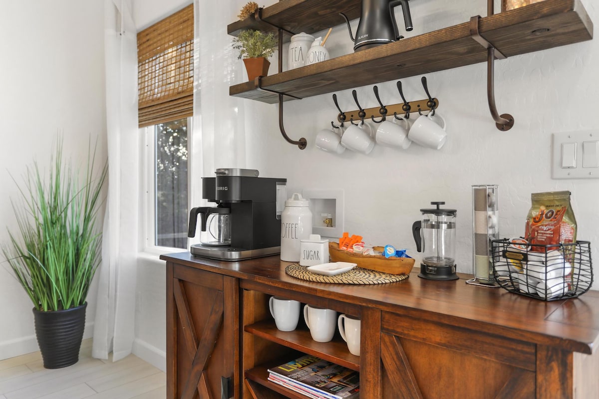 We strive to provide a truly relaxing experience for our guests. Each room has a Roku TV, extra blankets and pillows. Bathrooms are stocked with towels, shampoo, conditioner, and body soap. Kitchen has essential utensils and appliances for all your cooking needs. We also provide a fully stocked coffee/tea bar with a drip and pod coffee maker.